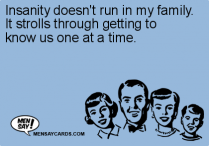 Insanity doesn't run in my family. It strolls through getting to know us one at a time.