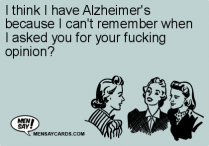 I think I have Alzheimer's because I can't remember when I asked you for your fucking opinion?